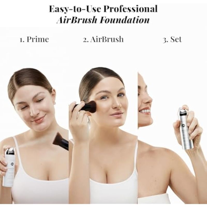 MagicMinerals AirBrush - Juego completo de 5 piezas de maquillaje en aerosol con base, imprimación y
