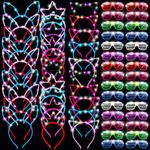 Gran cantidad: el paquete contiene 36 diademas LED, diseñadas con bonitas orejas de gato, orejas de conejo y corona en 3 estilos diferentes, 36 pares de gafas LED, mucha cantidad, combinación cuidadosa, adecuado para tu aplicación de fiesta