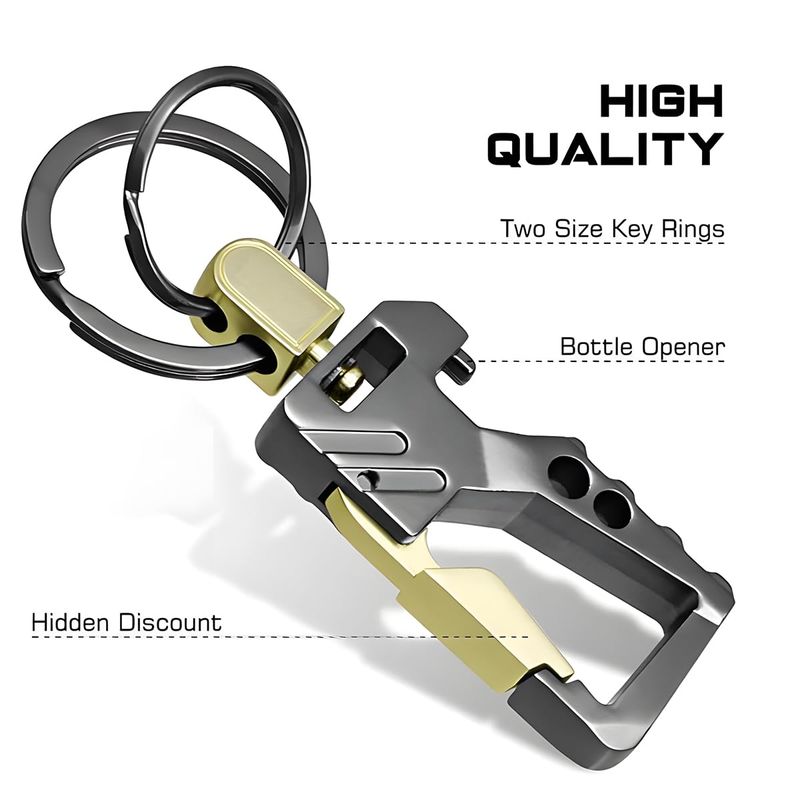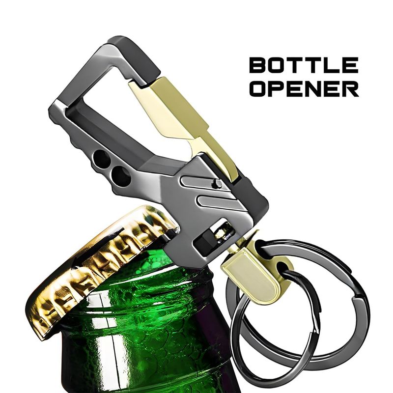 Mandark Llavero para automóvil, resistente y abrebotellas de cerveza con doble llavero mosquetón,