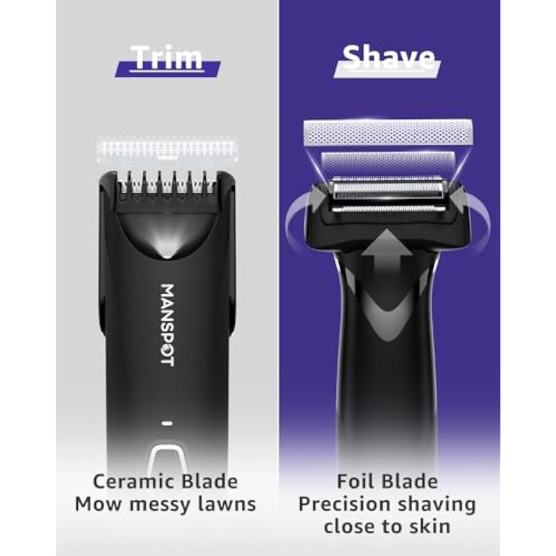 MANSPOT MANSCAPE - RECORTADORA DE CUERPO PARA HOMBRES, CUCHILLAS DE PAPEL DE ALUMINIO DE DOBLE CABEZA, RECORTADORA DE PELO/AFEITADORA, RECORTADORA DE PELO DE INGLE PúBICA, AFEITADORA DE PAPEL DE