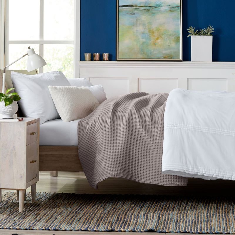 Manta de cama 100% algodón con tejido de gofre, suave, transpirable y ligera para todas las