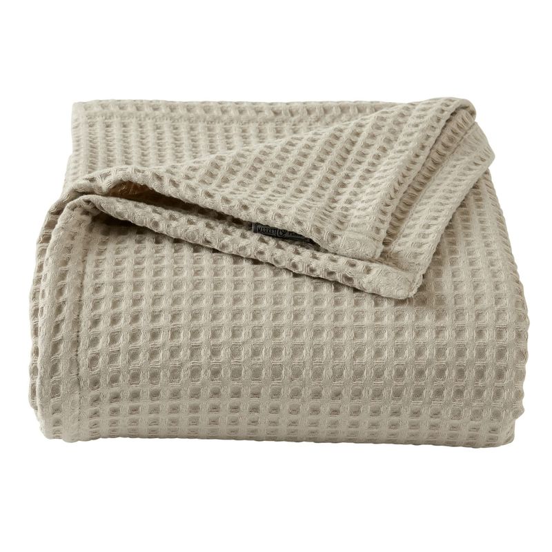 HOGARBLANQUERIAFRAZADAManta de cama 100% algodón con tejido de gofre, suave, transpirable y ligera para todas las