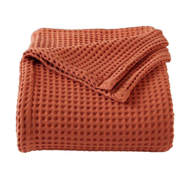 Manta de cama 100% algodón con tejido de gofre, suave, transpirable y ligera para todas las