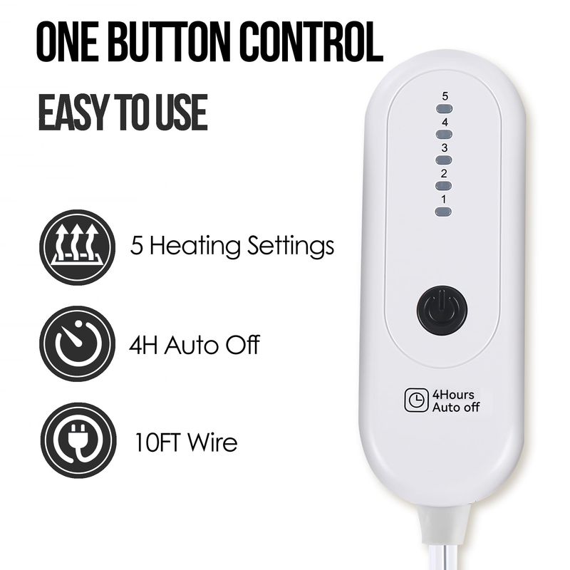 Manta térmica eléctrica, manta térmica de 50 x 60 pulgadas con 5 niveles de calefacción y apagado
