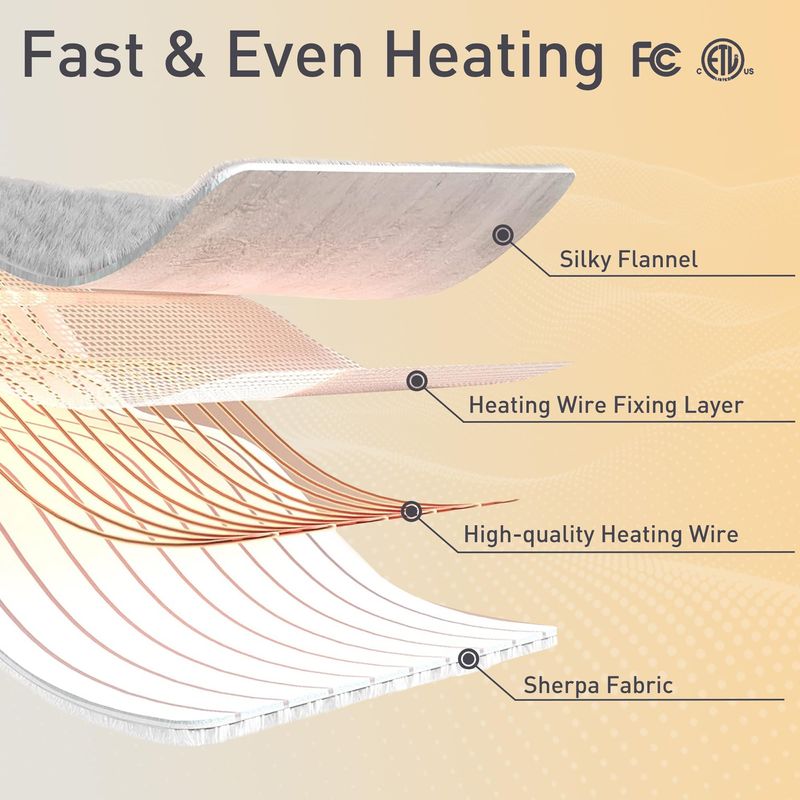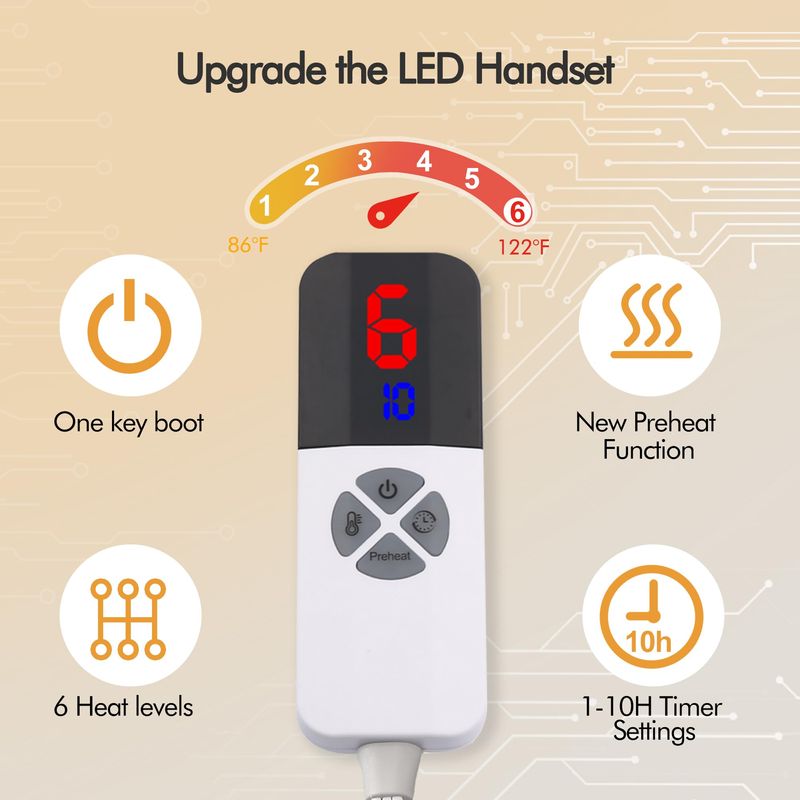 HOGARBLANQUERIAFRAZADAManta térmica eléctrica, manta térmica de 50 x 60 pulgadas con 5 niveles de calefacción y apagado