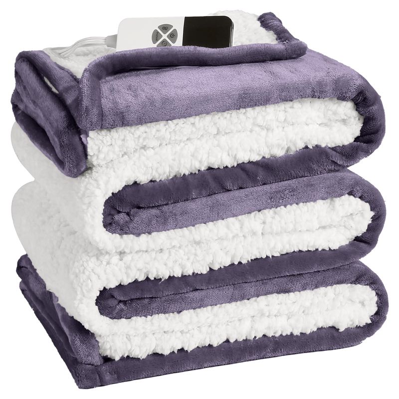 Tela suave y acogedora: la tela de franela sedosa en el exterior de la manta eléctrica te da una sensación agradable al tacto, mientras que el sherpa esponjoso en el interior te da el doble de calidez. No solo puedes sentirte cómodo con la combinación de dos telas, sino que también puedes mantener mejor el calor.