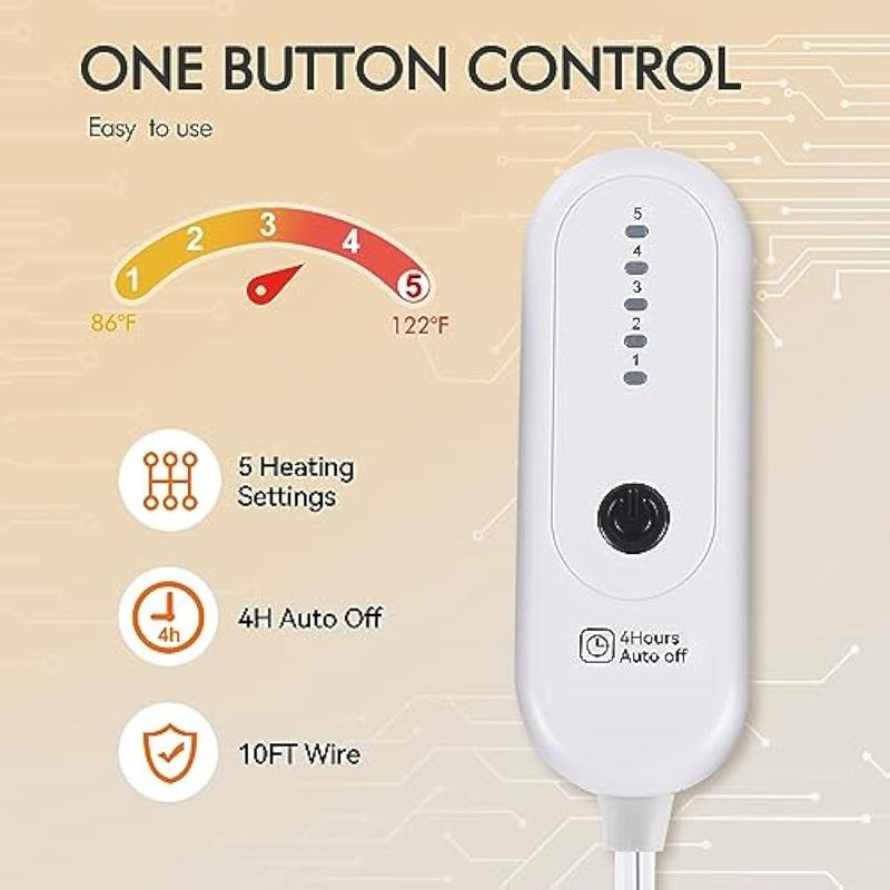 HOGARBLANQUERIAFRAZADAManta térmica eléctrica, manta térmica de 50 x 60 pulgadas con 5 niveles de calefacción y apagado