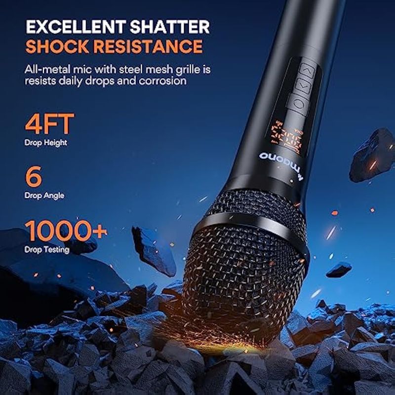 AUDIOMICROFONOSMAONO Micrófono inalámbrico, micrófono dinámico inalámbrico UHF, micrófono de karaoke de 20