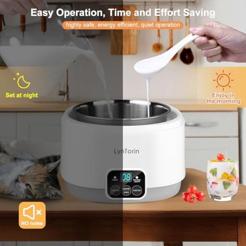Máquina de yogur inteligente y fácil de usar: la máquina de yogur LynTorin no tiene botones confusos, con instrucciones de función claras y visualización de la hora. La cubierta transparente de la yogurtera le permite ver de cerca el proceso de elaboración del yogur sin tener que adivinar el estado del yogur. Hacer tu propio yogur es muy simple y satisfactorio, solo da rienda suelta a tu creatividad.