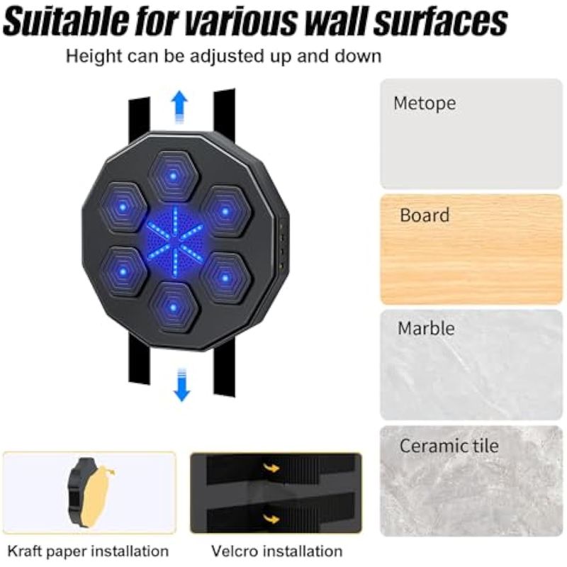 La mejor experiencia de boxeo musical: mejora tu entrenamiento con nuestra última máquina de boxeo musical recargable por USB. Con su elegante diseño montado en la pared, cable de carga USB incluido y guía de usuario idioma español no garantizado, sumérgete en un entrenamiento emocionante. Disfruta de una conectividad Bluetooth perfecta y altavoces integrados para amplificar tus canciones favoritas mientras conquistas tus objetivos de fitness con cada golpe.