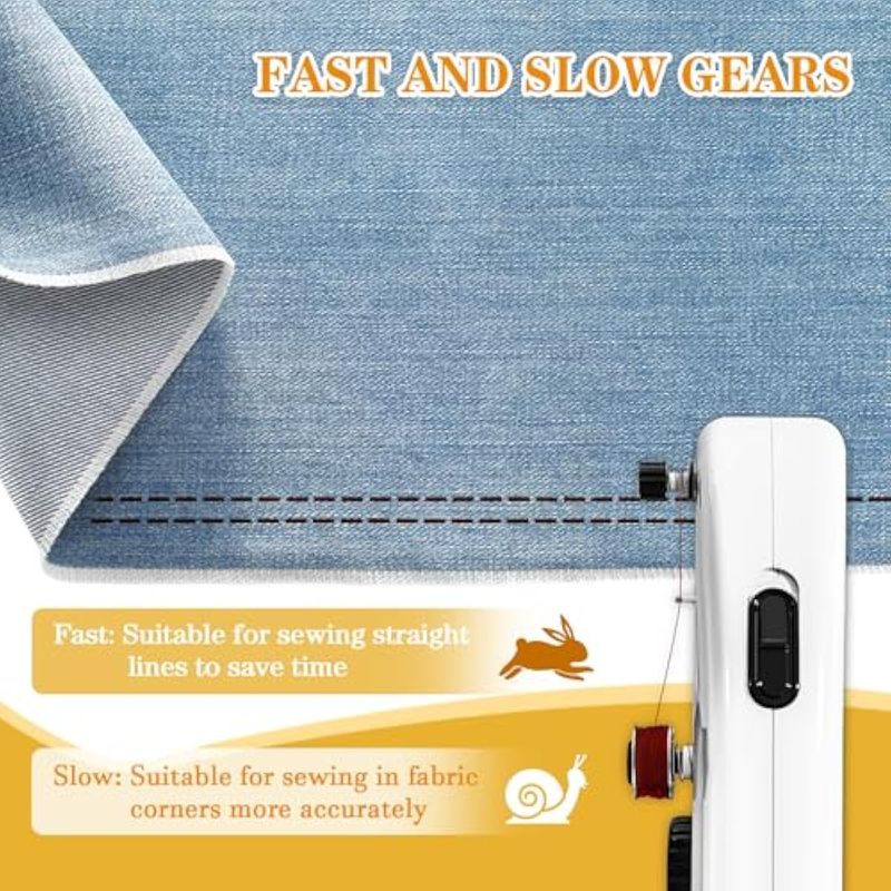 ?Ajuste de dos velocidades?El primer engranaje es lento, lo que es ideal para coser con mayor precisión las esquinas de tela. El segundo engranaje es adecuado para coser líneas rectas para ahorrar tiempo.