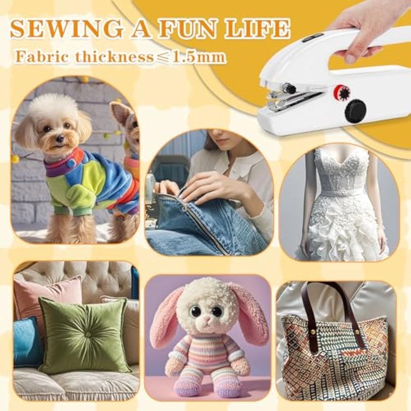 Máquina de coser portátil: la máquina de coser de mano es aplicable a una amplia variedad de artículos y telas con un grosor de 0.069 pulgadas o menos. Esto incluye tela de algodón, tela de lino, lana, seda, tela mezclada, mezclilla y muchos otros tipos.