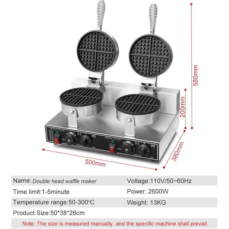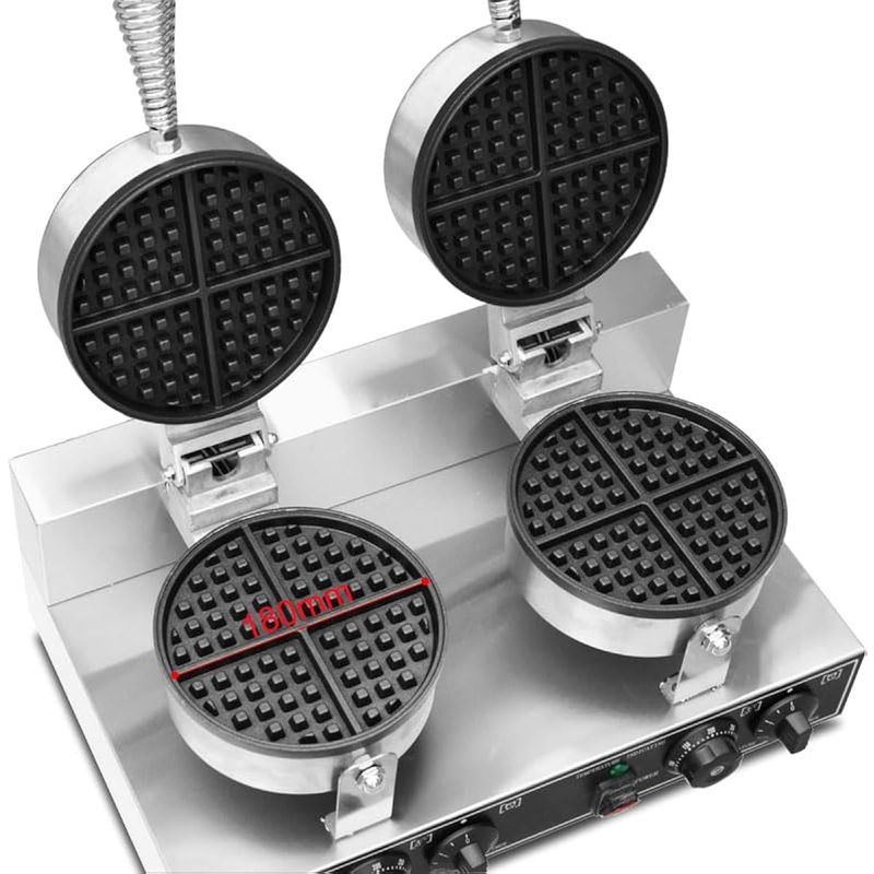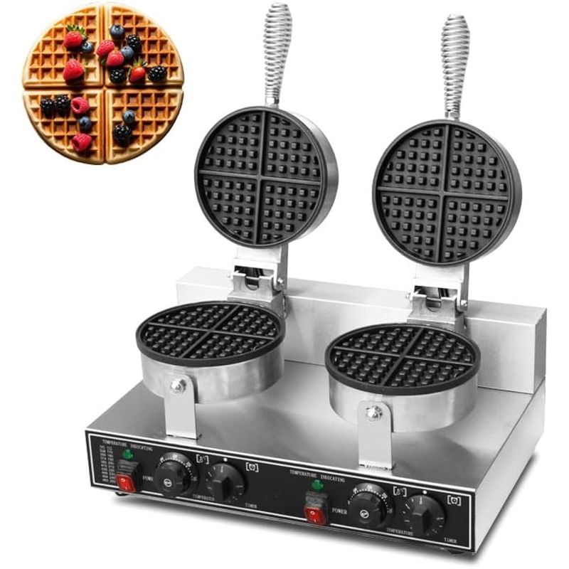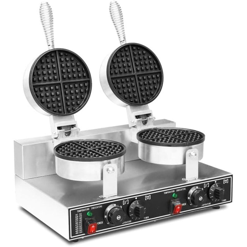 Máquina de gofres comercial de 110 V, 2600 W, planchas de doble gofre, de acero inoxidable,
