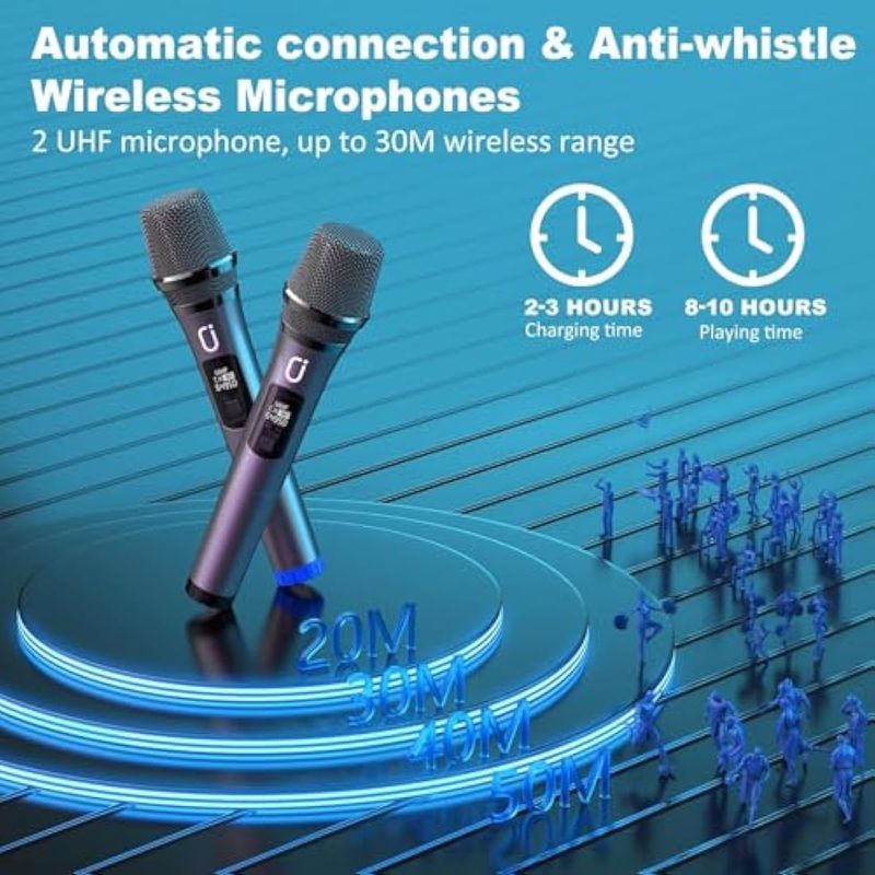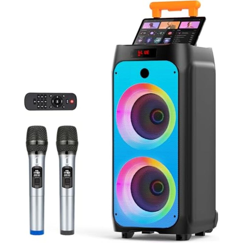 Máquina de karaoke con 2 micrófonos inalámbricos, altavoz Bluetooth portátil grande para fiesta en