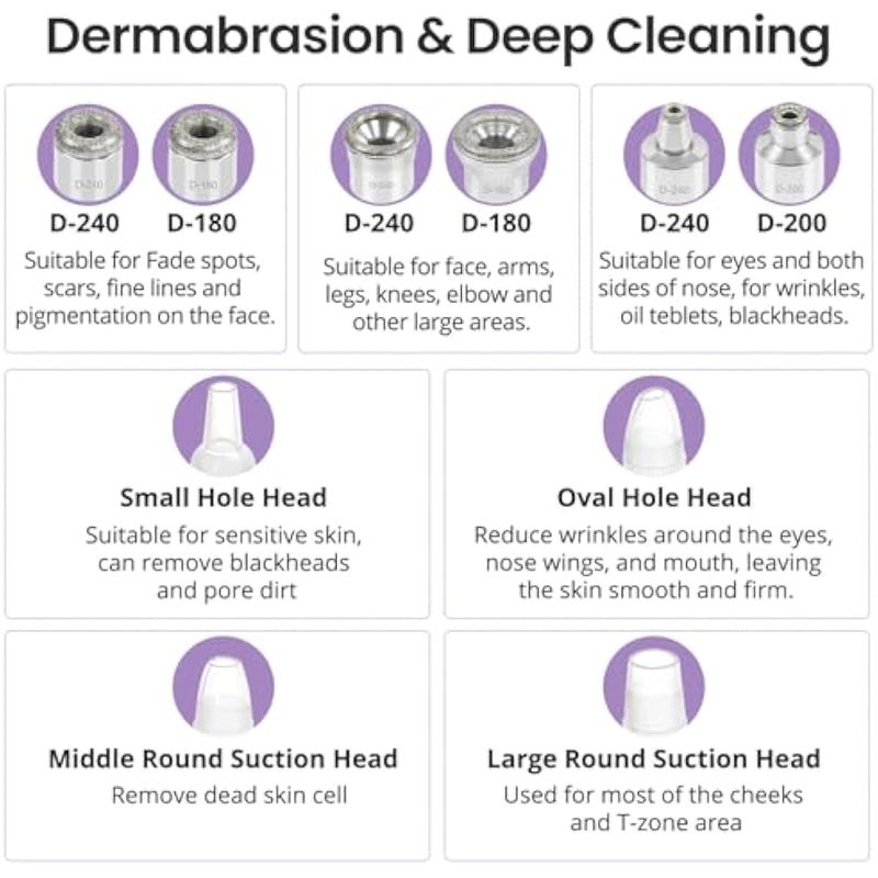 Este kit de microdermoabrasión en casa tiene 12 puntas de diamante, cada una meticulosamente diseñada para abordar múltiples problemas de la piel. Después de usar dermoabrasión, su piel puede aparecer ligeramente enrojecimiento. Te recomendamos que hidrates tu piel con un tónico o crema y el enrojecimiento desaparecerá aproximadamente 1 hora.