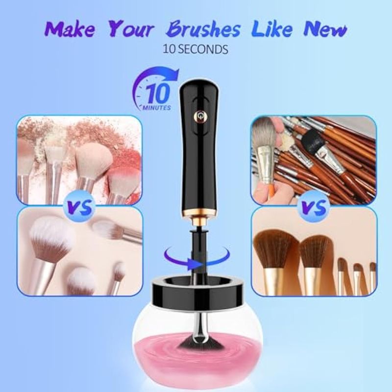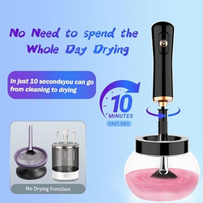 Limpia y seca rápidamente: utiliza la máquina limpiadora automática de brochas de maquillaje eléctrica para limpiar y secar rápidamente tus brochas en cuestión de segundos. No más limpieza tediosa de manos. Recomendado para limpiar cepillos cada dos semanas. Logra una mejor limpieza con una solución de limpieza