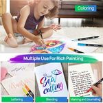 Creatividad del producto: todo el mundo es el maestro de la vida para descubrir y crear belleza, por lo que el juego de marcadores de doble punta es una herramienta indispensable a tu mano para bocetos, libros de colorear, caligrafía, dibujo, letras, diario, toma de notas, resaltado, renderizado, fabricación de tarjetas, ilustraciones de acuarela. El embalaje de plástico transparente es conveniente para el almacenamiento, y el juego de marcadores de pincel también es un regalo perfecto para ser elegido en aniversarios, cumpleaños, graduaciones.