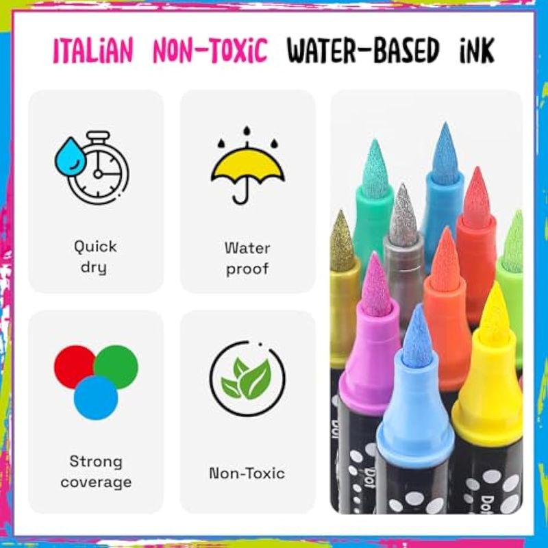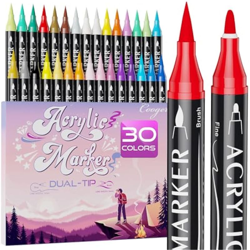 Marcadores de pintura acrílica de doble punta de 30 colores, punta fina y punta de pincel,
