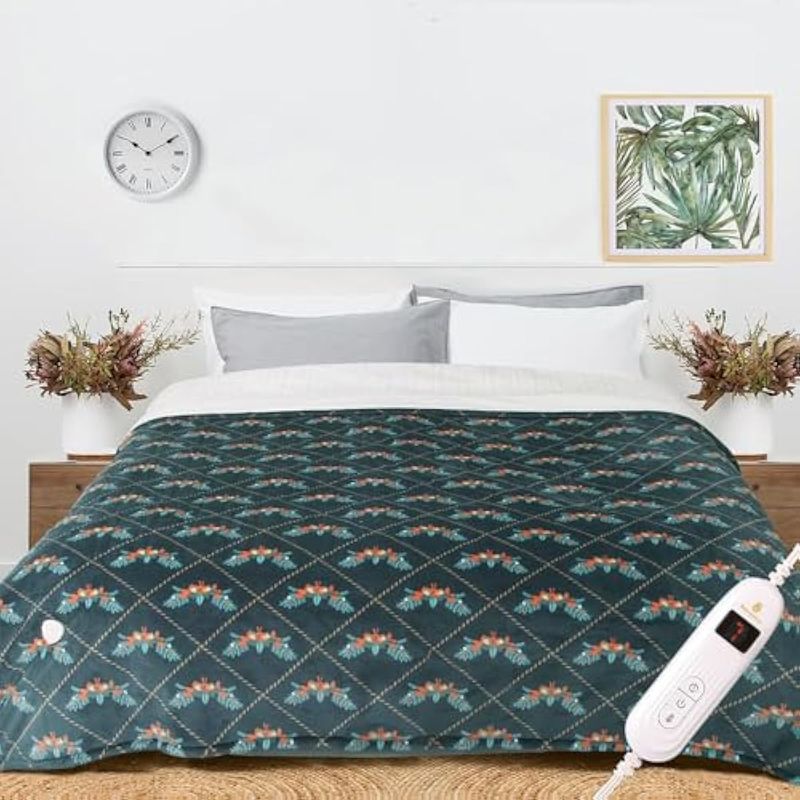 MARQUESS MANTA TéRMICA ELéCTRICA IMPRESA DE 62 X 84 PULGADAS, MANTA TéRMICA REVERSIBLE DE FELPA SHERPA Y FRANELA LAVABLE CON 10 AJUSTES DE CALOR/SEGURIDAD 8 HORAS DE APAGADO AUTOMáTICO CON CONTROLADORES DOBLES (VERDE OSCURO, INDIVIDUAL)