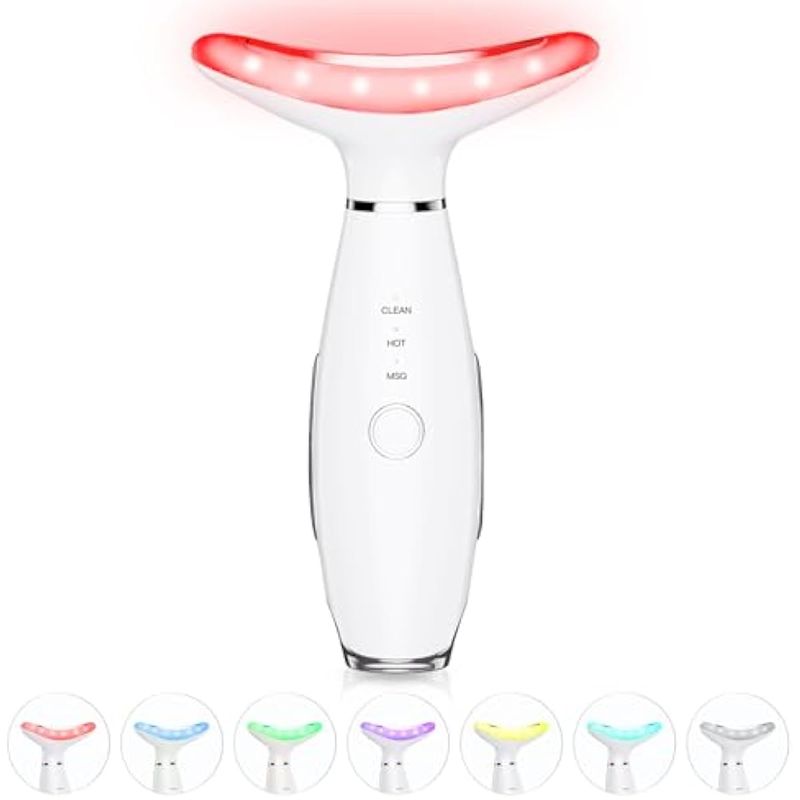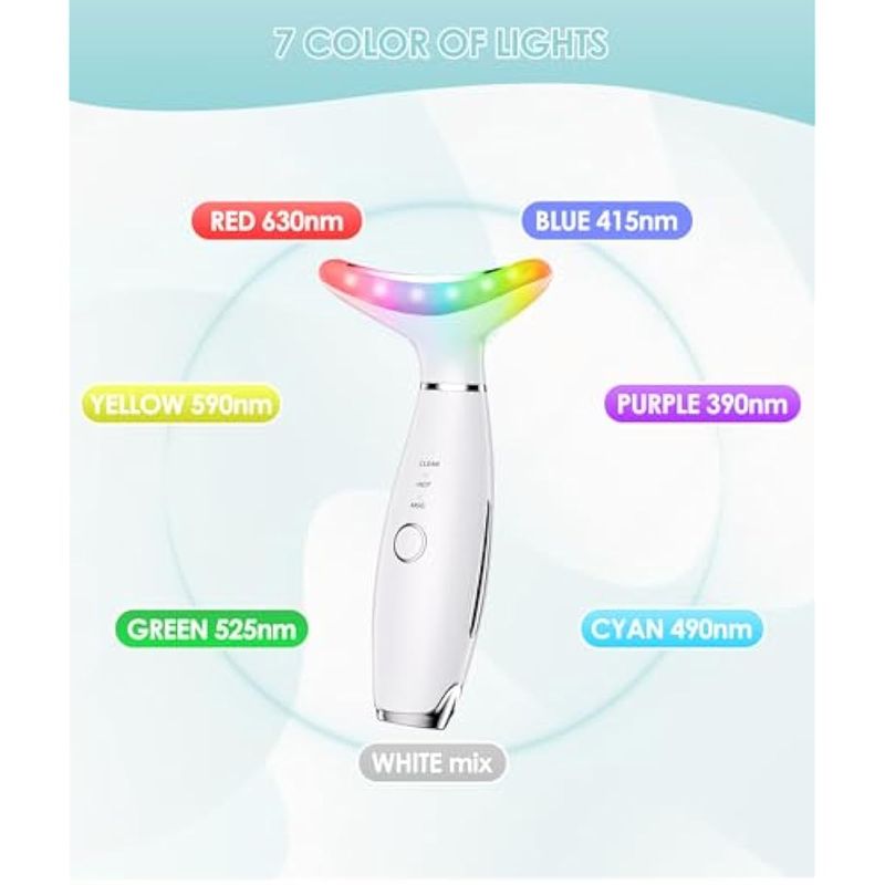 MASAJEADOR FACIAL DE CUELLO DE 7 COLORES - HERRAMIENTA DE MASAJEADOR FACIAL PARA EL CUIDADO DE LA PIEL EN CASA, MASAJEADOR FACIAL VIBRANTE CON TéRMICAS, BLANCO