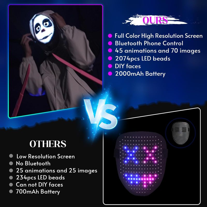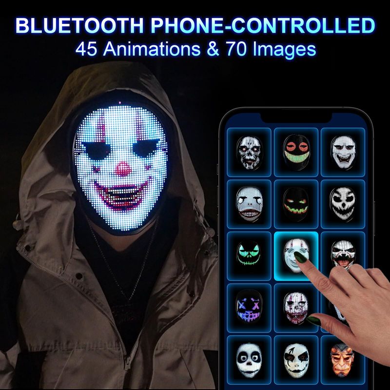 Máscara LED transformadora facial con control por aplicación, máscara LED programable de Halloween,