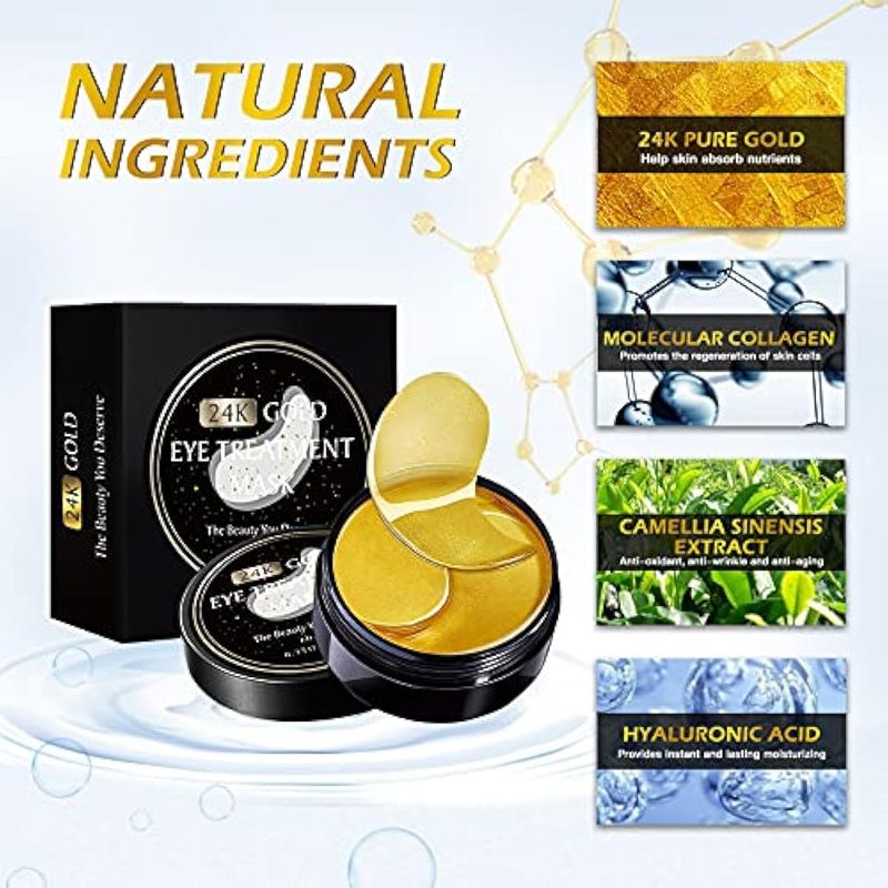 MáSCARAS DE OJOS DE ORO DE 24 QUILATES, CON PARCHES DE COLáGENO DEBAJO DE LOS OJOS, MáSCARAS DE TRATAMIENTO DE GEL PARA OJERAS DEBAJO DE LOS OJOS, ALMOHADILLAS DEBAJO DE LOS OJOS PARA OJOS HINCHADOS,