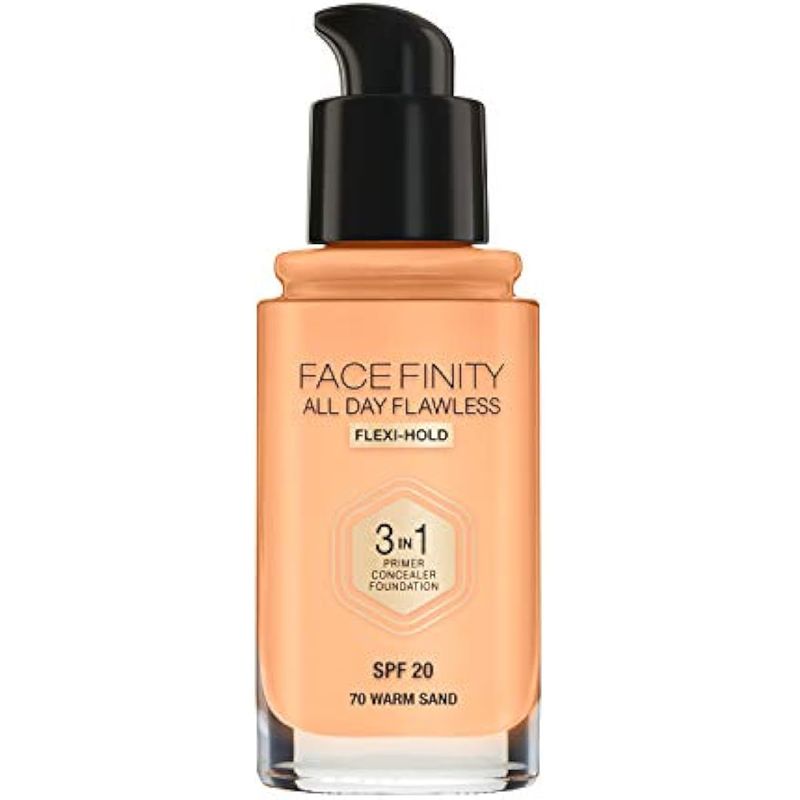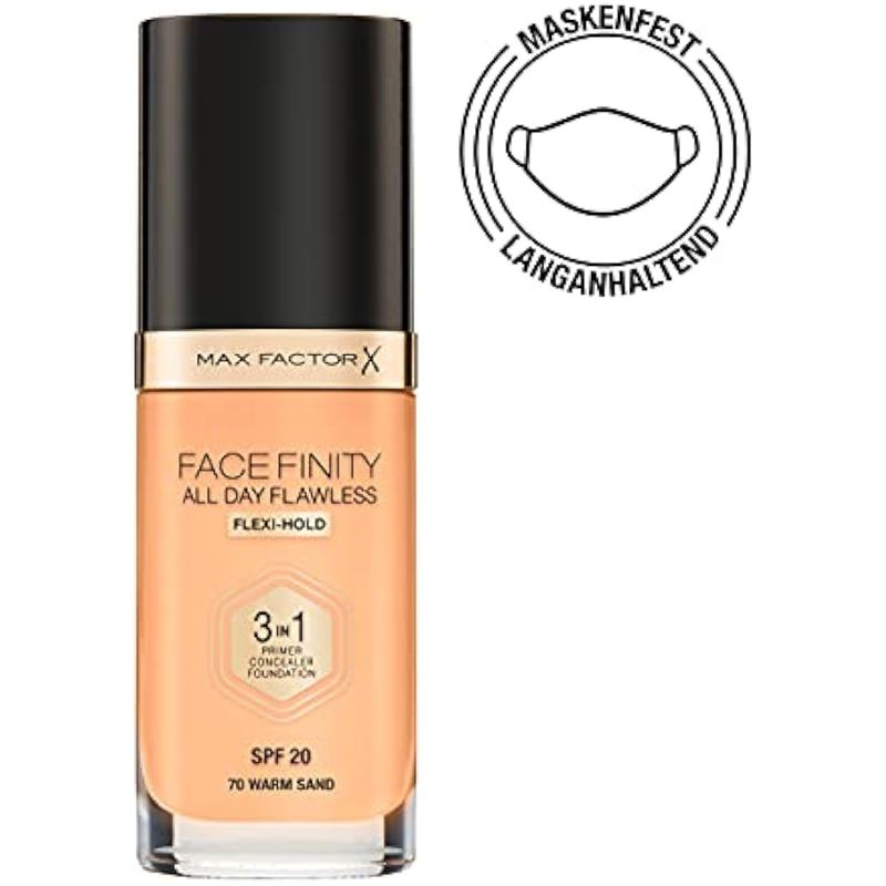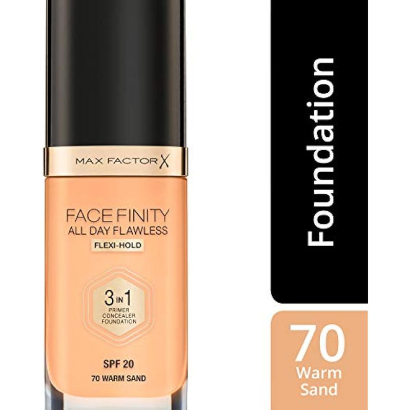 Max Factor Facefinity - Base líquida 3 en 1 para todo el día, FPS 20-70, arena cálida, 1.0 fl oz