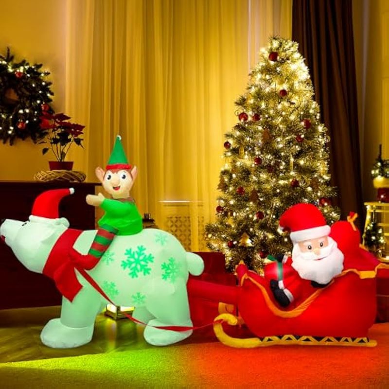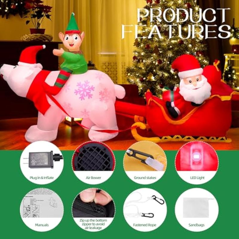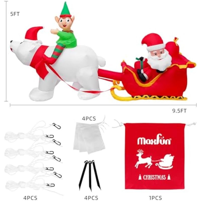 MAX FUN DECORACIONES INFLABLES DE NAVIDAD DE 9.5 PIES, TRINEO INFLABLE DE PAPá NOEL INTEGRADO CON LUZ LED CON OSO POLAR Y CAJAS DE REGALO, DECORACIóN DE PATIO AL AIRE LIBRE PARA DECORACIóN DE NAVIDAD INTERIOR Y EXTERIOR