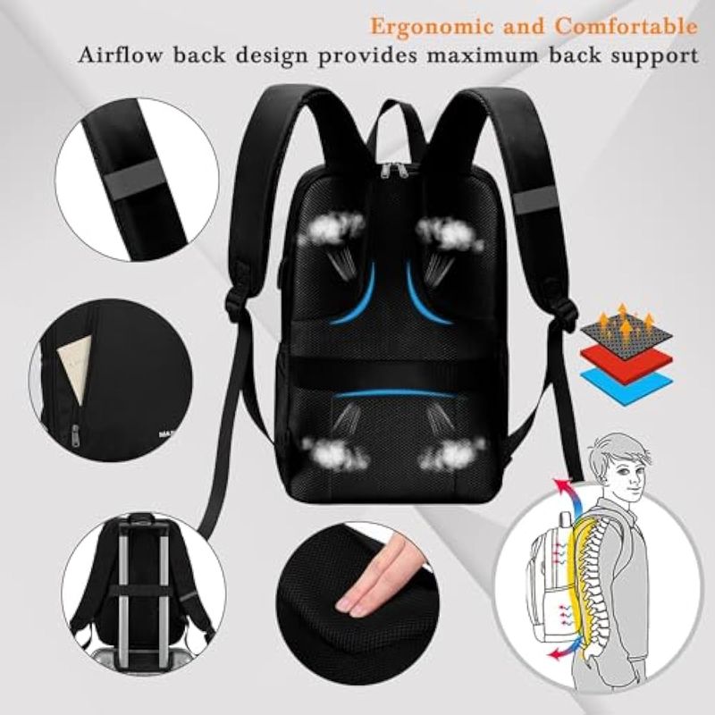 Comodidad y seguridad: la correa de equipaje en la parte posterior de las mochilas para laptop está diseñada para asegurar la bolsa al carrito de equipaje para un fácil transporte, haciendo que tus viajes de negocios y viajes de negocios sean más convenientes. Hay un bolsillo trasero antirrobo oculto en la parte posterior para proteger tus artículos importantes del robo. Las tiras reflectantes en las correas de los hombros te mantienen más seguro por la noche.