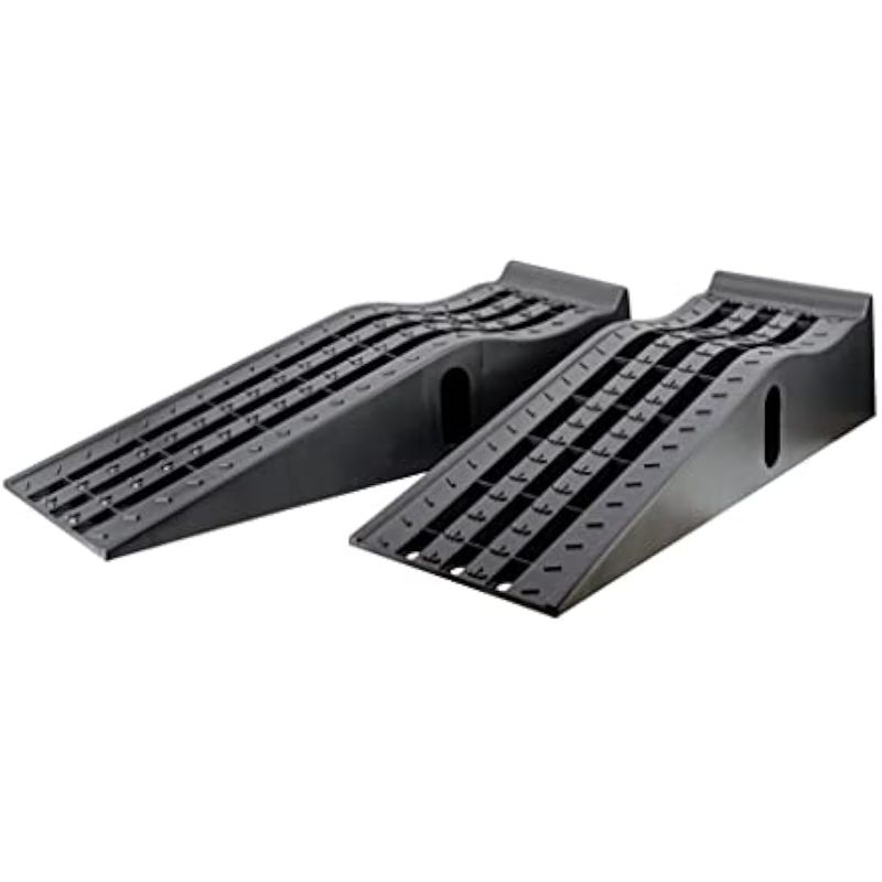 Tiene una capacidad máxima de peso de 3,250 libras por rampa o 6,500 libras. par que te permite realizar reparaciones o mantenimiento del vehículo de forma segura en la parte inferior de tu vehículo