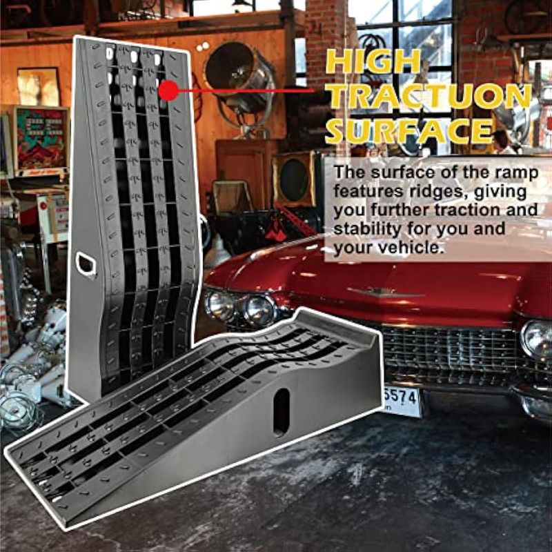 Nuestra rampa de elevación MaxxHaul 50515 de 6 pulgadas tiene una capacidad de peso máxima de 3,250 libras por rampa o 6,500 libras por par, lo que te permite realizar reparaciones o mantenimiento del vehículo de forma segura en la parte inferior de tu vehículo. Está fabricado con plástico resistente para proporcionar un producto resistente y confiable y cuenta con topes de goma en la base para evitar el movimiento de la rampa o el deslizamiento. Las rampas tienen una altura máxima de elevación de 6 pulgadas, proporcionando un fácil acceso a la parte inferior de cualquier vehículo. Las medidas de la rampa son 35-12 pulgadas de largo x 12 pulgadas de ancho x 8-12 pulgadas de alto.