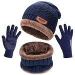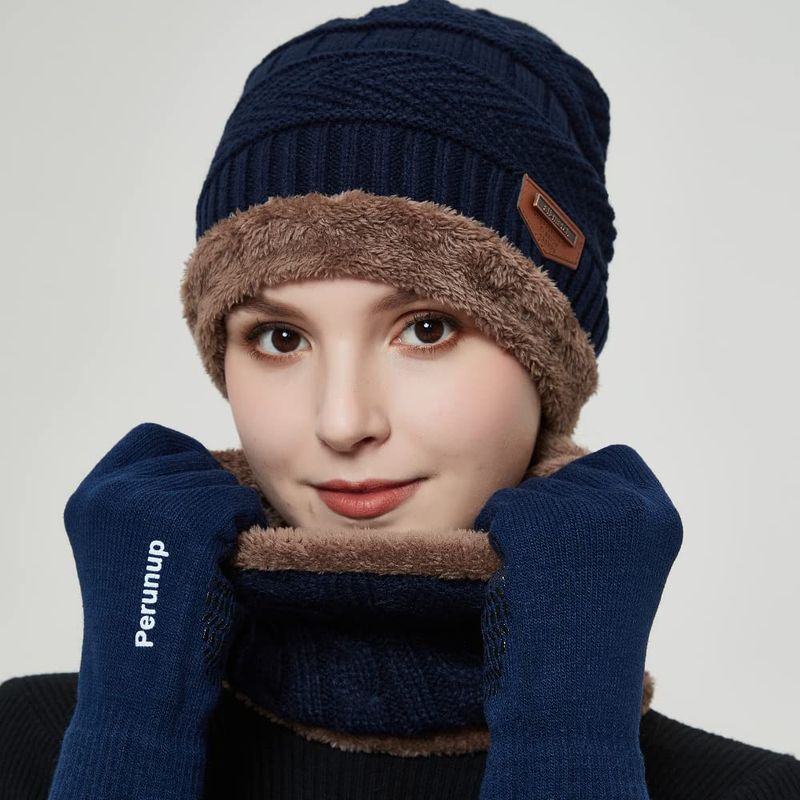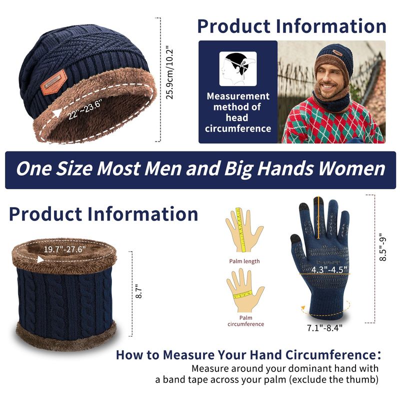 HOGARINDUMENTARIA Y ACCESORIOSMAYLISACC Gorro de punto de invierno, bufanda y guantes para pantalla táctil, juego de 3 piezas con
