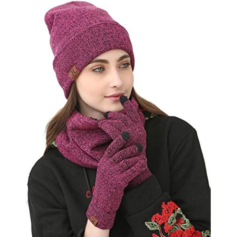 HOGARINDUMENTARIA Y ACCESORIOSMAYLISACC Juego de 3 piezas de gorro de punto, bufanda y guante para hombres y mujeres, gorro de