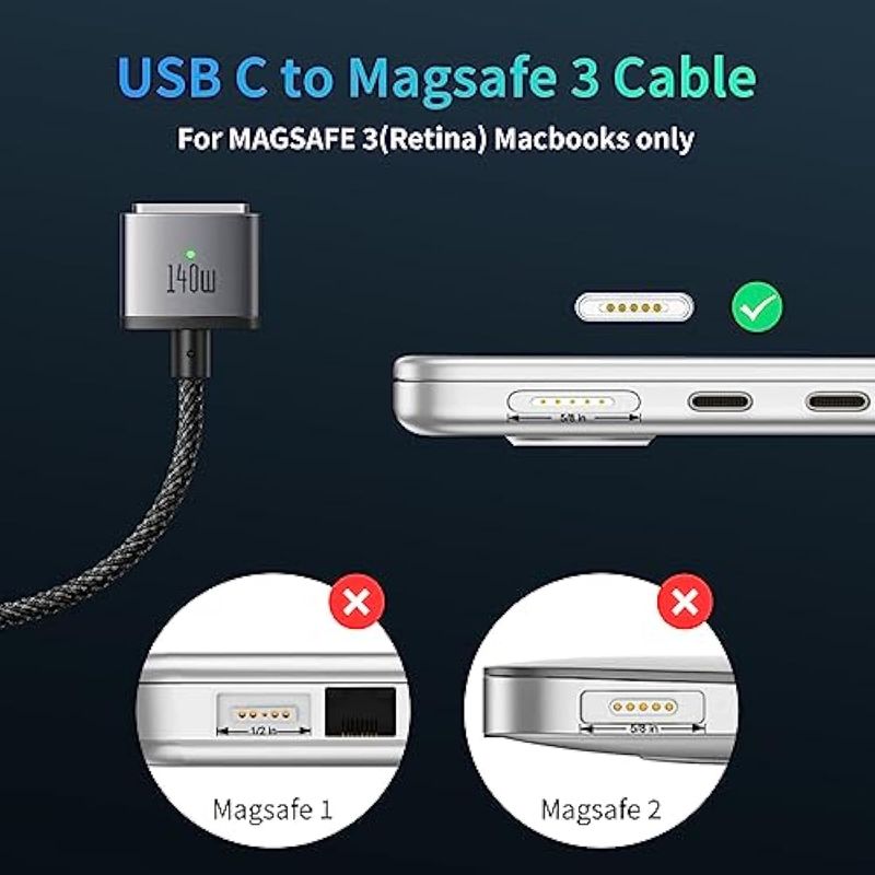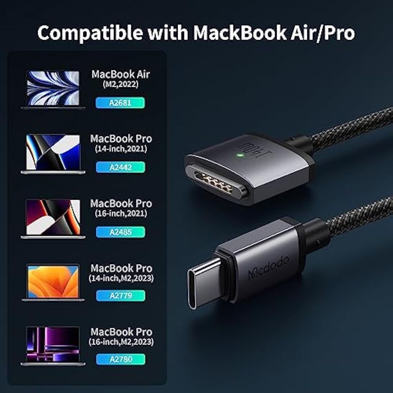 Compatibilidad: el cable USB-C a magnético 3 de Mcdodo solo es compatible con MacBook Air M2, 2022, MacBook Pro 14 pulgadas, M2, 2023, MacBook Pro 14 pulgadas, M1, 2021, MacBook Pro 16 pulgadas, M2, 2023 y MackBook Pro 16 pulgadas, M1, 2021