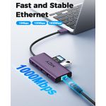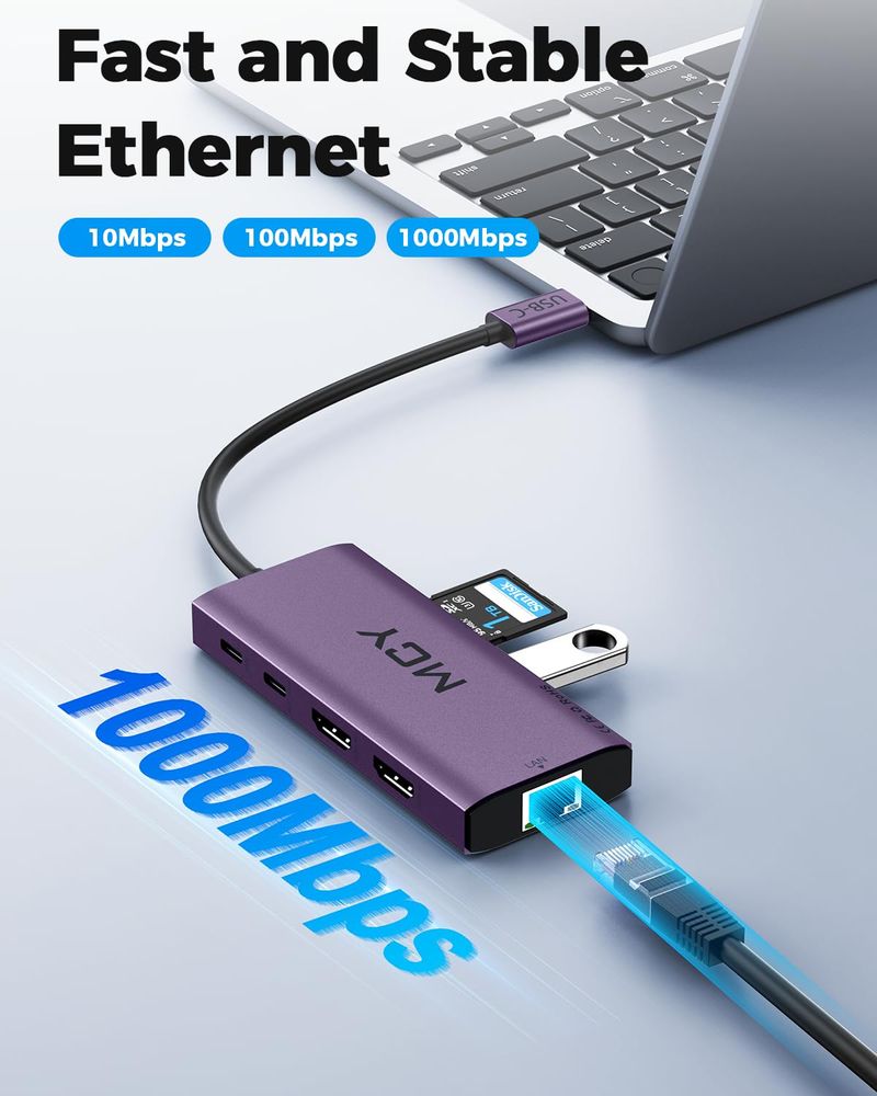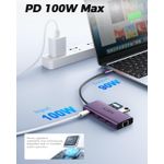 Carga rápida de paso PD de 100 W: el concentrador USB para laptop tiene un puerto de carga USB tipo C 100WPD, que puede cargar rápidamente tu laptop, tabletateléfono cuando usas otros puertos. Cuando el concentrador USB C Thunderbolt está completamente cargado, no hay necesidad de preocuparse por que la computadora portátil pierda energía. Y cuando trabajas o juegas, puedes conectarte al puerto Ethernet de 1000 Mbps del adaptador USB C a Ethernet alimentado, lo que te proporciona una red estable y rápida, asegurando un trabajo eficiente y rápido y una experiencia de Internet ultrarrápida.