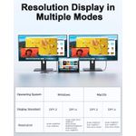 ?Salida Ultra HD de doble pantalla?La estación de acoplamiento dual HDMI soporta modos de extensión y espejo de 8K a 60 Hz individuales. Adaptador USB C a HDMI ideal para portátiles MacBookWindows. Las imágenes ultra claras te traen un festín visual. Nota: 1, HDMI1 8K requiere soporte para PC con protocolo DP1.4 los sistemas Mac solo admiten 4K. 2. En el modo DP1.2, el modo espejo del sistema de Windows solo admite 1080p1440p@60Hz, soporte de modo de extensión 4K @30Hz. 3. Para MAC, la pantalla en ambos monitores externos será idéntica