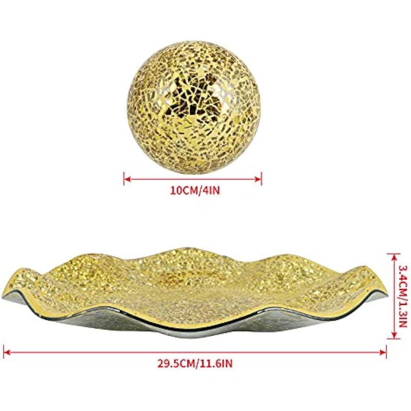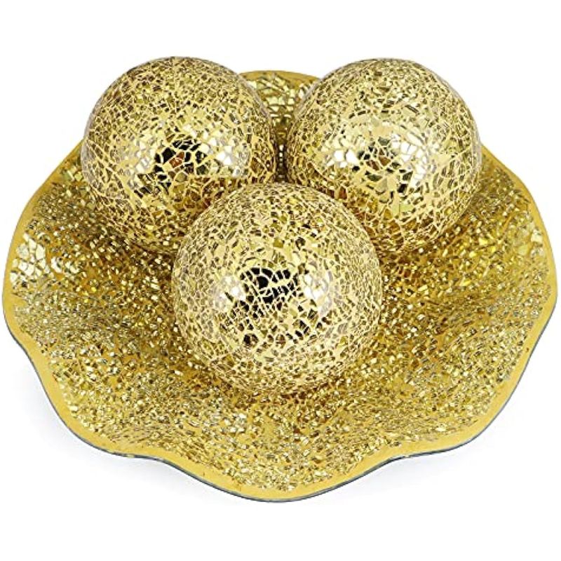 MDLUU Juego de cuencos y bolas de centro de mesa, bandeja de mosaico con 3 esferas, plato decorativo