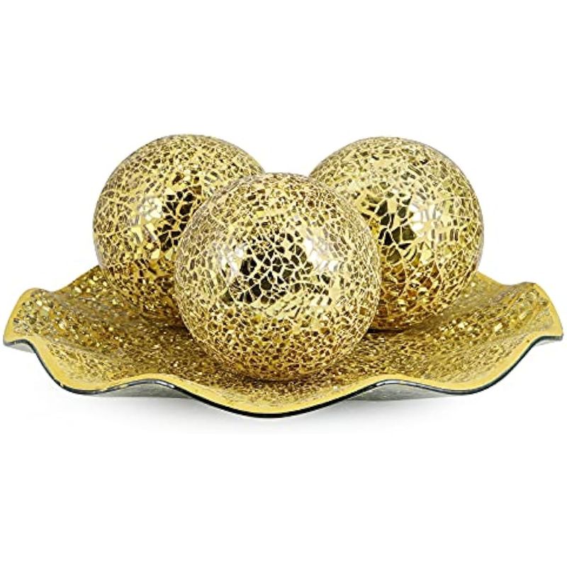 HOGARBAZARDECORACIONMDLUU Juego de cuencos y bolas de centro de mesa, bandeja de mosaico con 3 esferas, plato decorativo