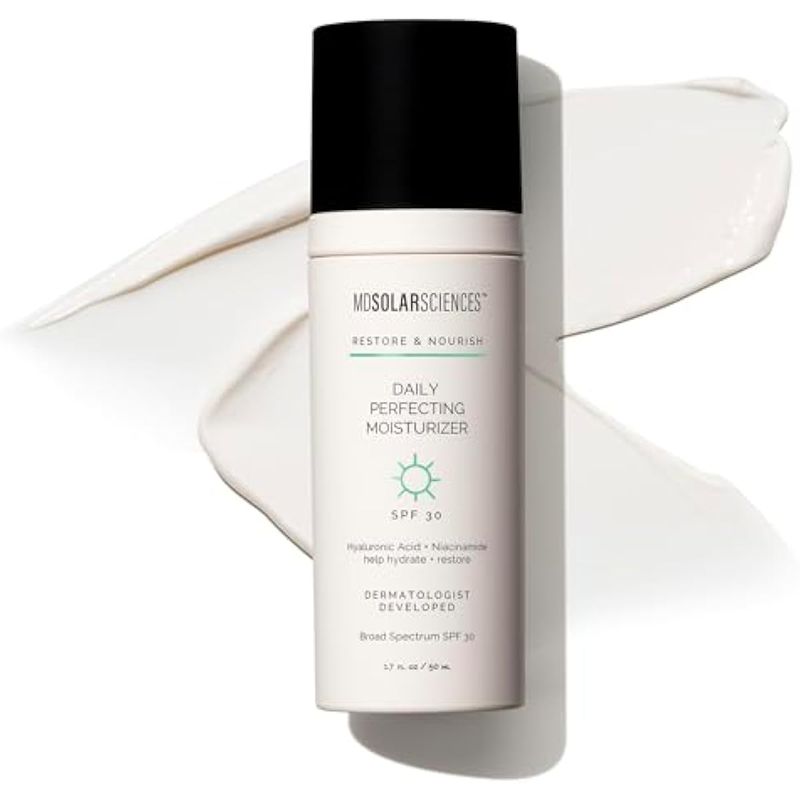 MDSOLARSCIENCES DAILY PERFECTING MOISTURIZER SPF 30, HIDRATANTE FACIAL 2 EN 1 Y PROTECTOR SOLAR HIDRATA Y PERFECCIONA LA PIEL CON áCIDO HIALURóNICO, PROTECCIóN DE AMPLIO ESPECTRO, 1.7 ONZAS