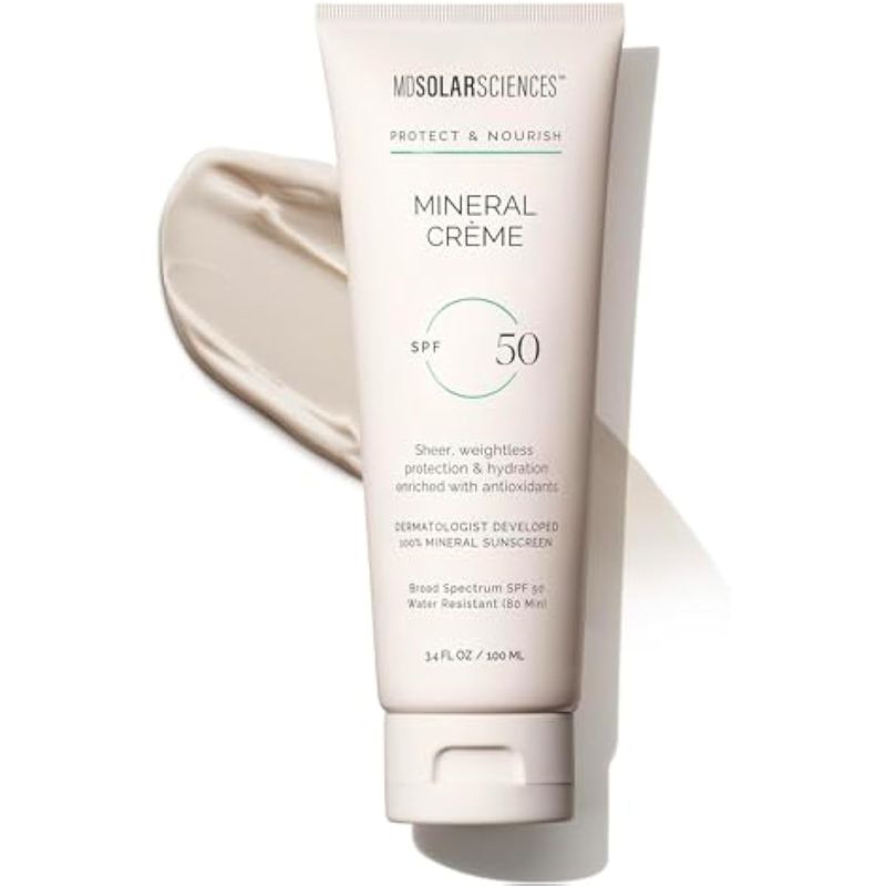 MDSOLARSCIENCES MINERAL CRèME SPF 50 PROTECTOR SOLAR PARA CARA, RESISTENTE AL AGUA, PROTECCIóN UV DE AMPLIO ESPECTRO, óXIDO DE ZINC MICRONIZADO MEZCLABLE, ACABADO MATE SUAVE, NATURAL, 3.4 ONZAS
