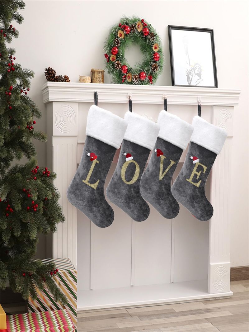 ?Diseño y material?: estas medias de Navidad están hechas de algodón de alta calidad y felpa súper suave con buena sensación al tacto, rústicas y lujosas, medias de Navidad de terciopelo exquisita artesanía hecha a mano y diseño de bucles colgantes que hacen que las medias de Navidad se cuelguen de forma segura y fácil cuando te metes en regalos de Navidad. Letras ideales para decoraciones de fiestas de Navidad.
