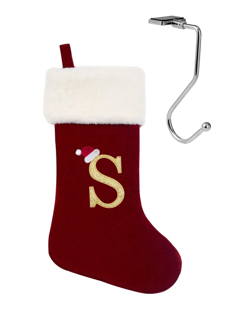 infleesh Medias de Navidad con monograma de 20 pulgadas con letras, medias de Navidad de felpa súper suaves y grandes, medias de monograma con letras rojas para regalo de Navidad