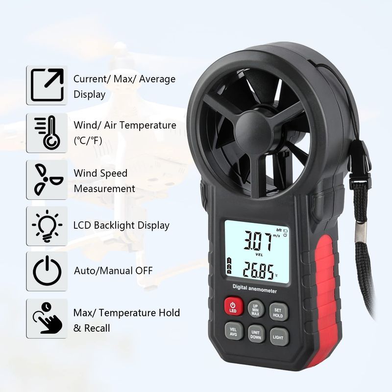 HOGARBAZARDECORACIONMedidor digital de velocidad de viento, anemómetro de viento, medidor de velocidad de flujo de aire