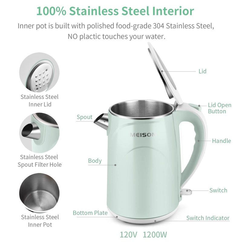 PEQUEÑOS ELECTRODOMÉSTICOSPEQUEÑOS COCINAPAVAS ELÉCTRICASMEISON Hervidor eléctrico, 1.7 L, doble pared de grado alimenticio, acero inoxidable, caldera de