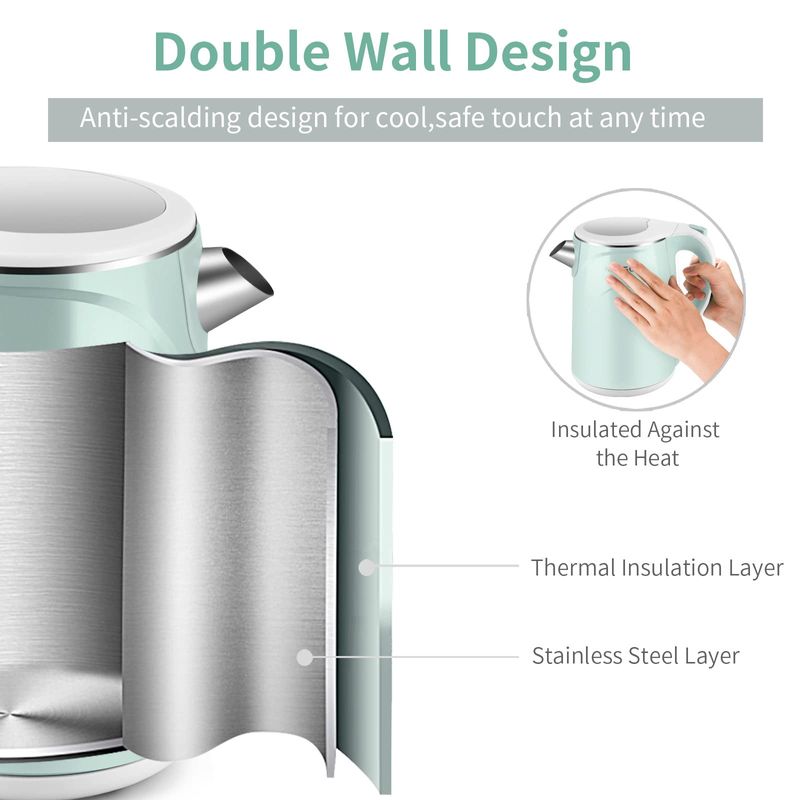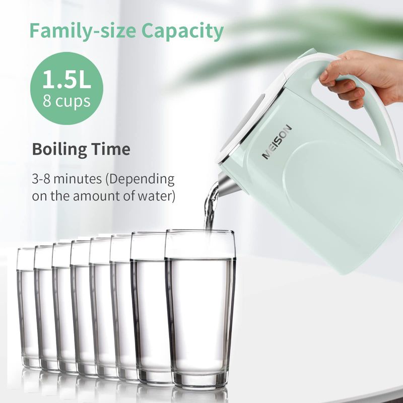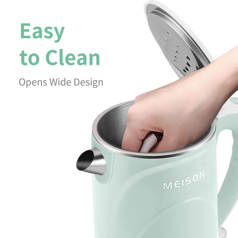 MEISON Hervidor eléctrico, 1.7 L, doble pared de grado alimenticio, acero inoxidable, caldera de