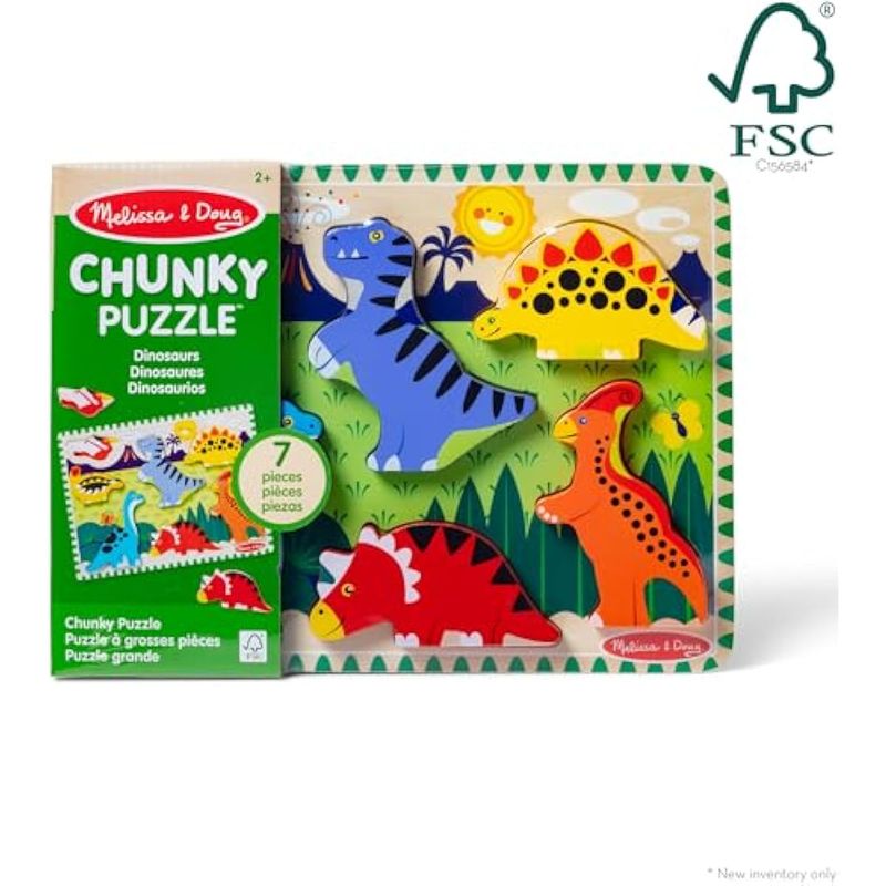 BEBES Y NIÑOSJUGUETESMelissa & Doug dinosaurio Chunky Rompecabezas de madera, Multicolor
