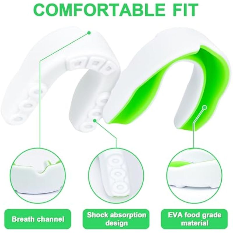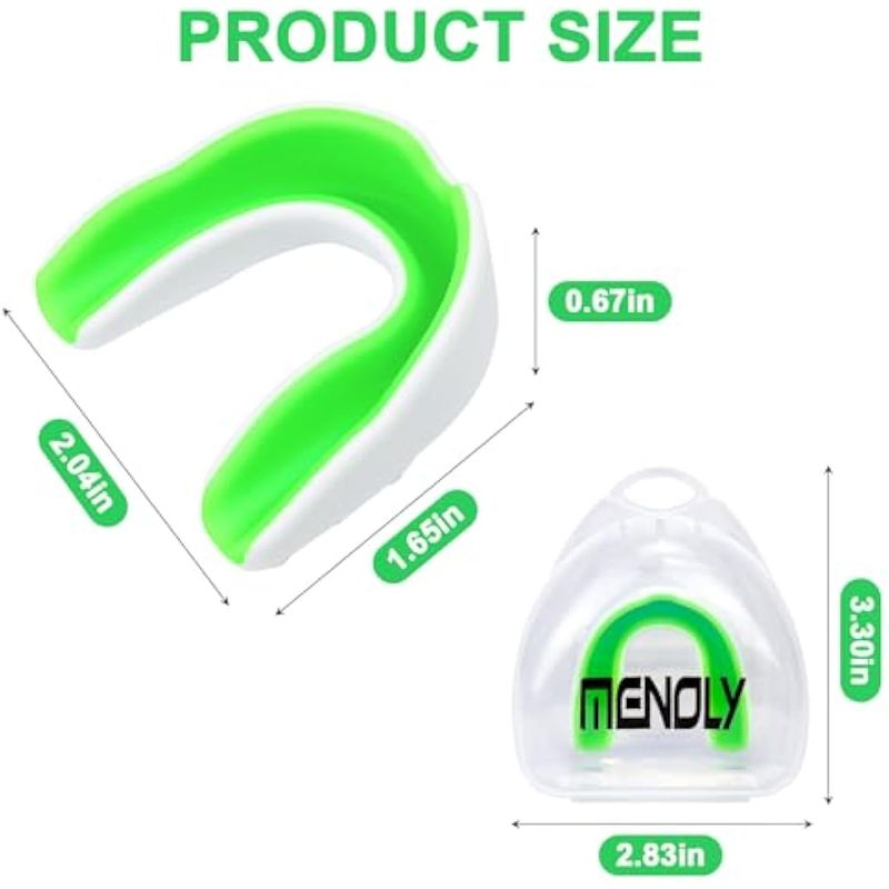 Material cómodo y seguro: protector bucal MENOLY hecho de EVA, capa interior hecha de gel de silicona suave y de grado alimenticio, insípido, no tóxico. El diseño de canal más grande hace que la respiración sea más suave.