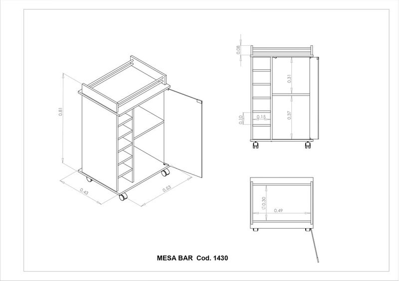 Mesa Bar Móvil Multifunción con Bodega y Puerta de Vidrio - 1430