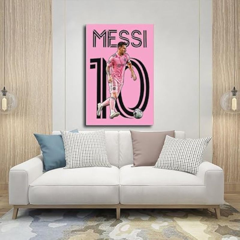 MESSI - PóSTER DE JUGADOR DE ESTRELLA DE FúTBOL, PóSTER DE LIENZO PARA DECORACIóN DE PARED, PINTURAS IMPRESAS PARA SALA DE ESTAR, DORMITORIO, SIN MARCO: 12 X 18 PULGADAS (11.8 X 17.7 IN)