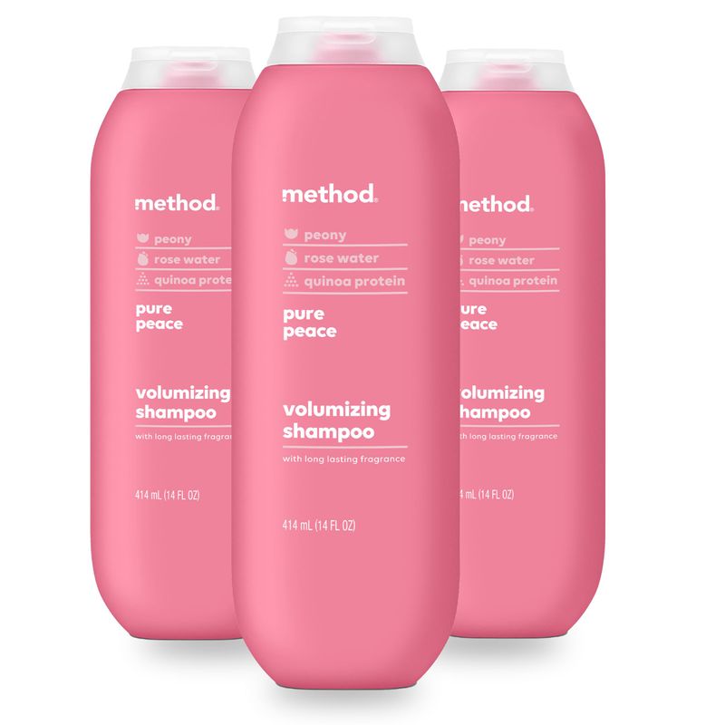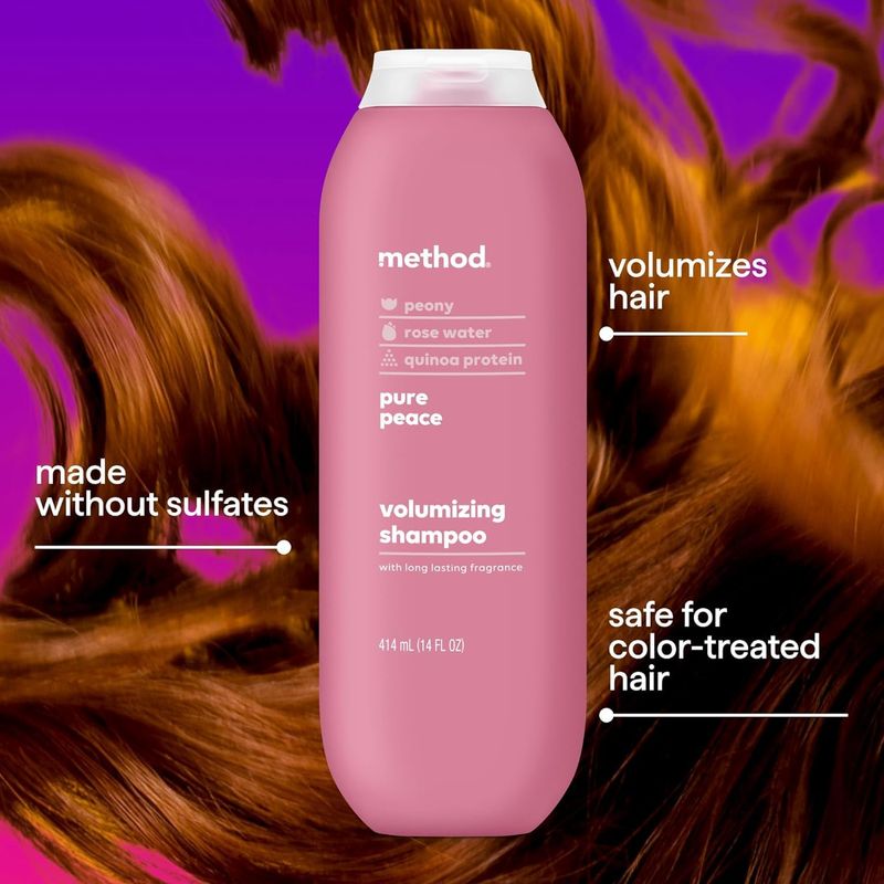 Method Champú voluminizador, Pure Peace con notas aromáticas de rosa, peonía y sal marina rosa, sin
